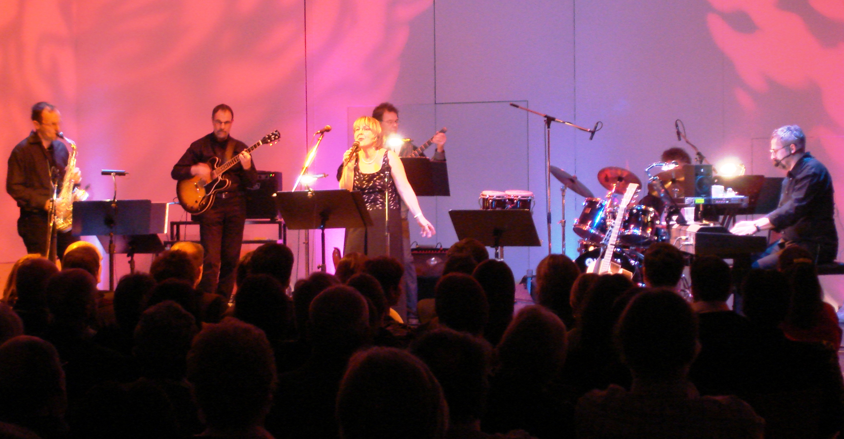 … Durch den Abend getragen wurde man aber durch die wundervolle Alt-Stimme von Christine Matter, der Jazzsängerin mit der klassischen Gesangsausbildung. Kraftvoll, mit viel Gefühl und einem Augenzwinkern, interpretierte Christine Matter die Evergreens und Perlen aus der Musikgeschichte. Coverversionen, die dem Vergleich mit dem Original jederzeit Stand hielten. … Die sechs Bandmitglieder treffen sich alle zwei Wochen zum Proben im Untergrund. Ihr Übungslokal befindet sich im Untergeschoss des AEW-Hochhauses. Also eine echte „underground“-Band, die das Rampenlicht nicht scheut und sich noch auf viele gemeinsame Auftritte freut.